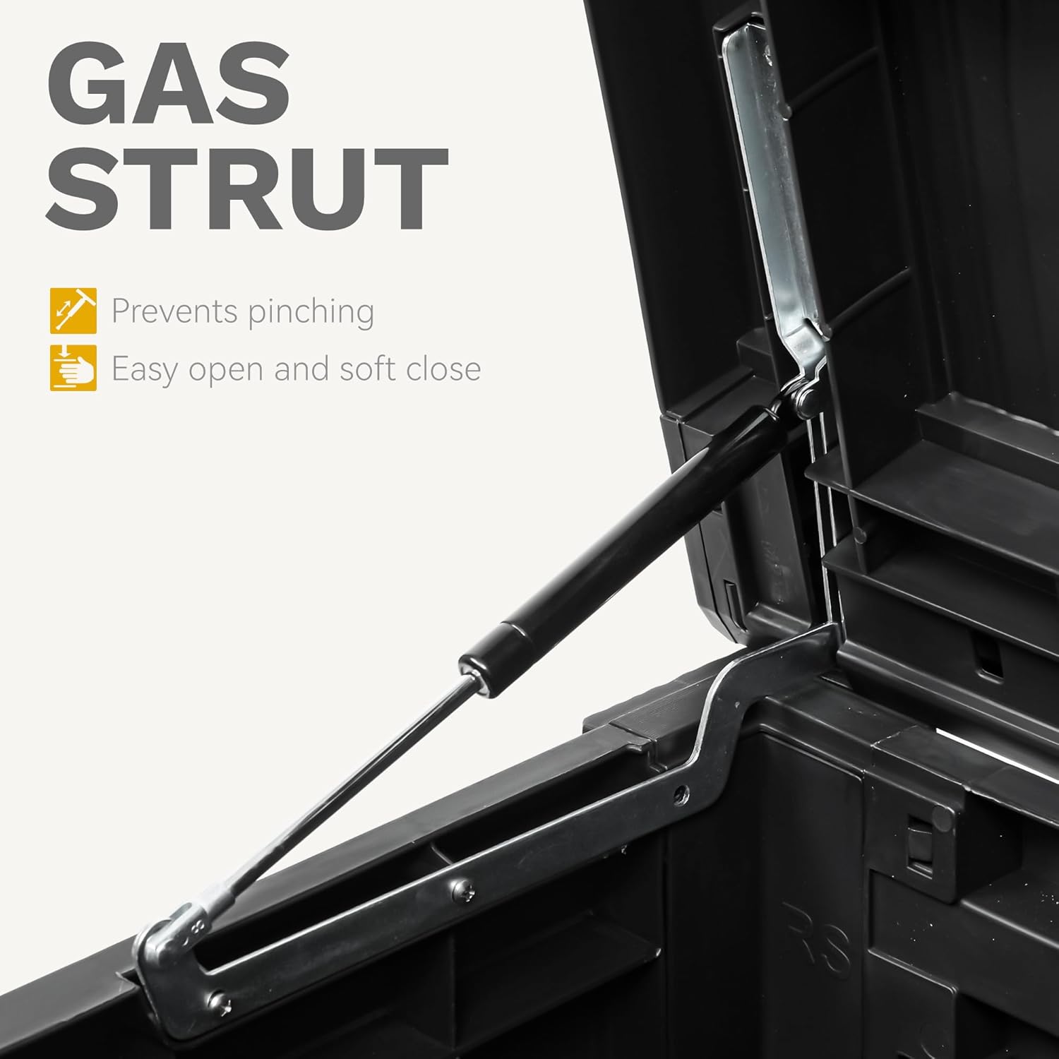 DWVO 150 Gallon XL Deck Box with Divider & Lockable Lid, Waterproof Resin Outdoor Storage for Patio, Garden, Poolside, Cushions, Supplies & Sports Gear, Black