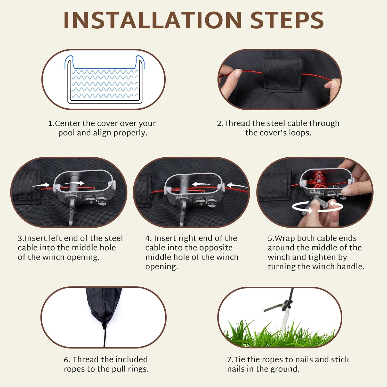 iBirdie Winter Pool Cover fit 18' x 33', 19' x 34' Above Ground Oval Pools, Fade-Resistant Tear-Resistant Waterproof and Weatherproof for Outdoor Protection, Black, Fabric 500D