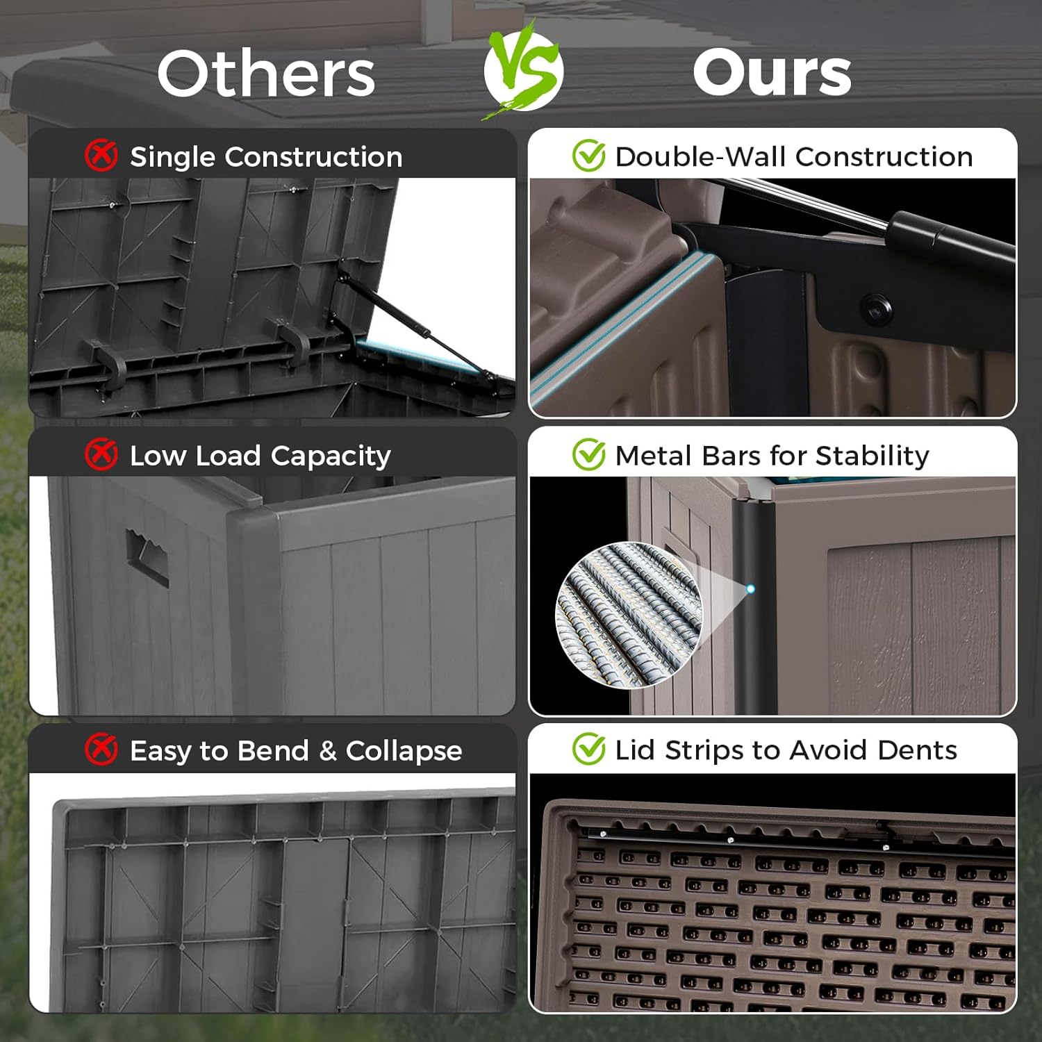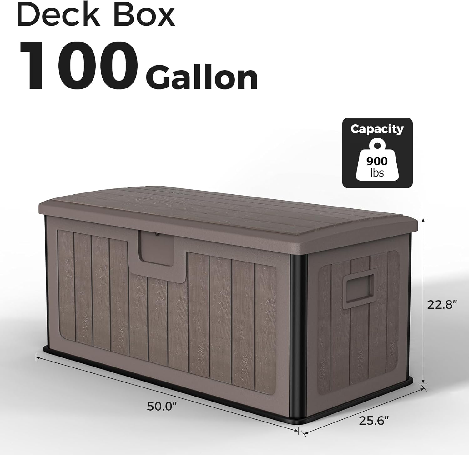 Outdoor Storage Deck Box 100 Gallon, UV Resistant & Waterproof Deck Box with Double-Wall Construction, Lockable Storage Bins Container for Pool Patio Garden