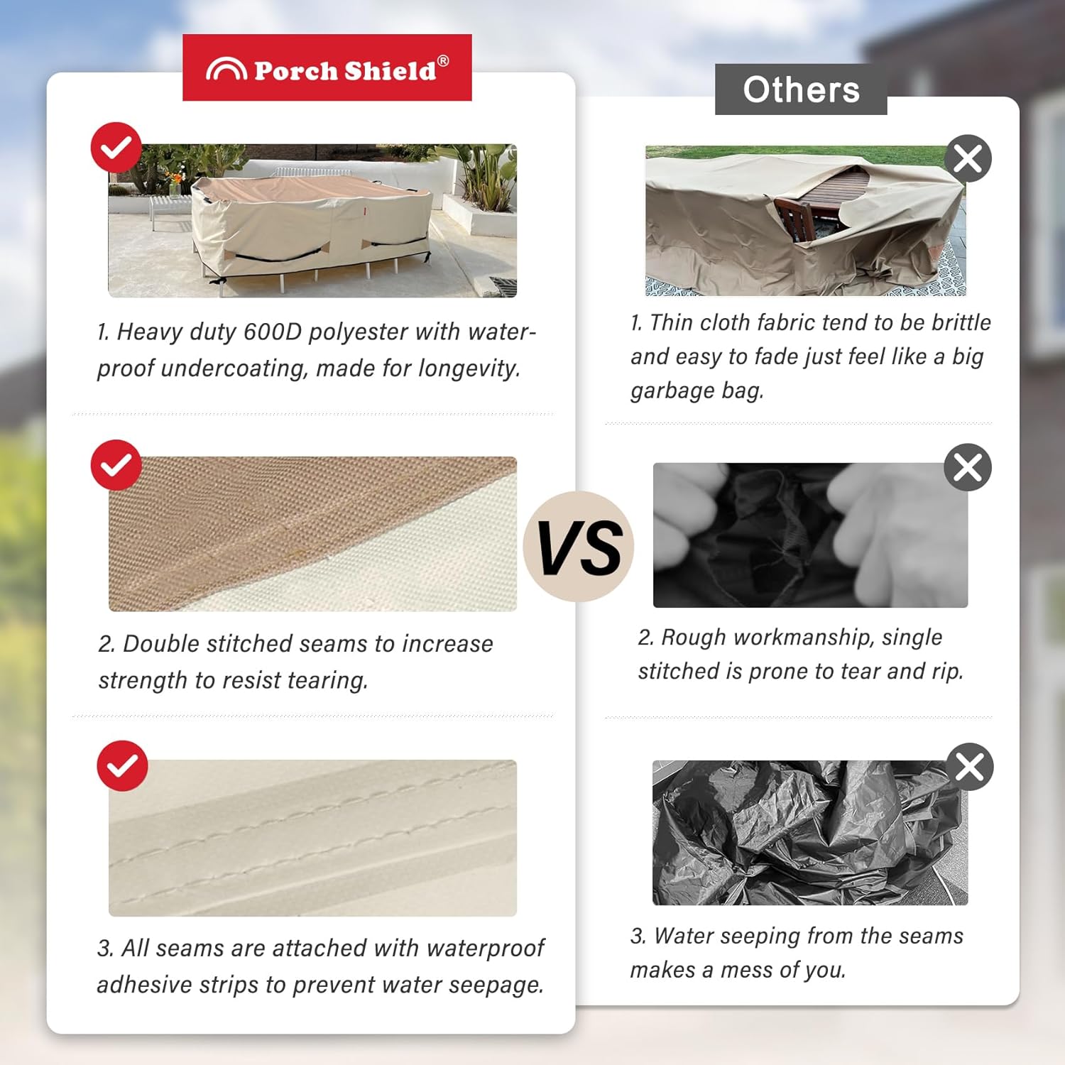 Porch Shield expects people to cherish the time they spend with friends and family at the countryyard. Ensure your comfortable outdoor life is our top priority. We have committed to high quility patio furniture covers for several years and pay attention to every detail of products and ensure you to receive an portable and exquisite item.