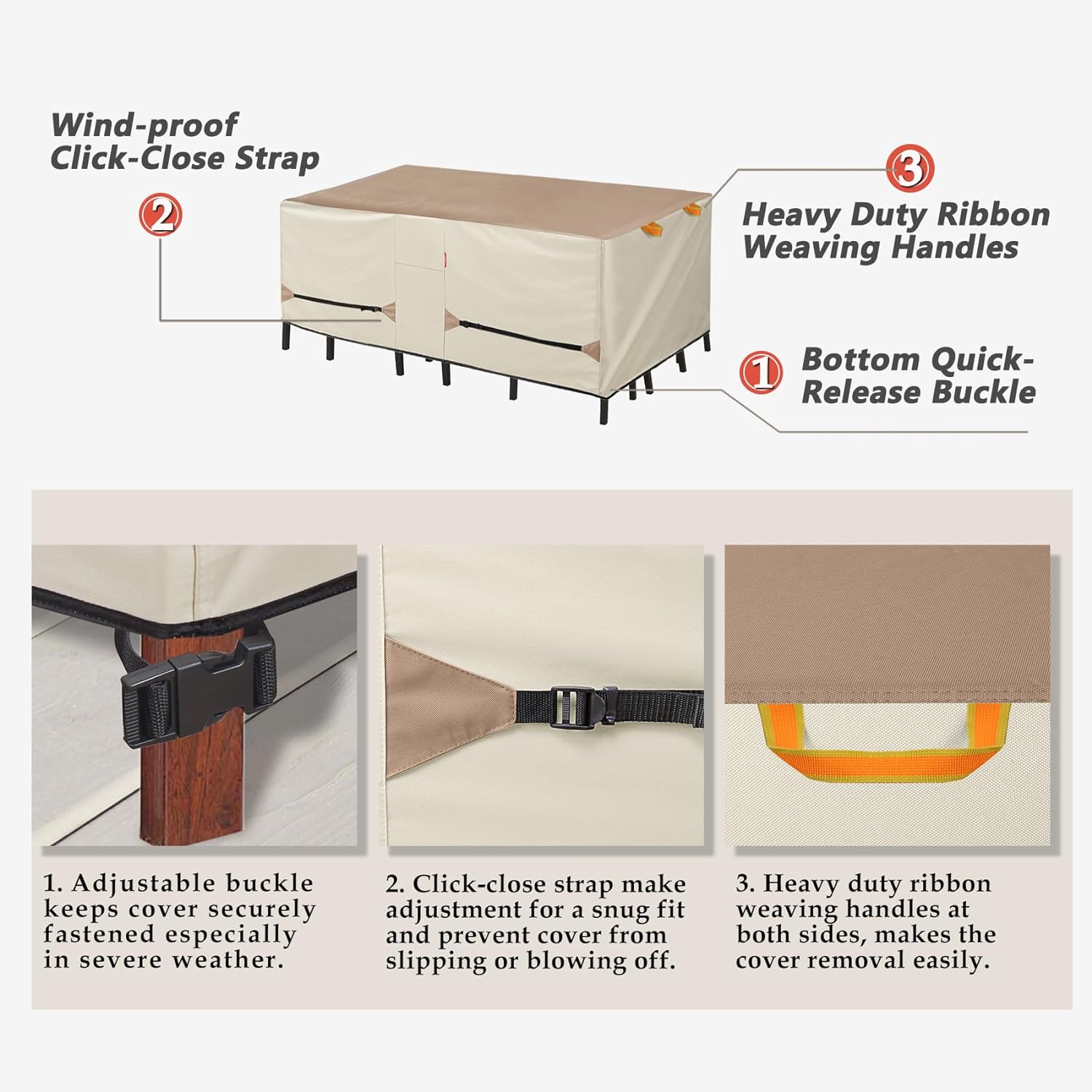 Porch Shield Patio Table Cover - Waterproof Outdoor Dining Table and Chairs Furniture Set Cover Rectangular - 108 x 70 inch, Light Tan & Khaki