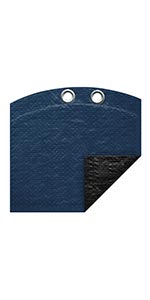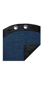 The Robelle Super Winter Pool Cover is a heavy-duty solid winter pool cover. Solid pool covers do not allow water to pass through their material. The Robelle Super Winter Pool Cover features a heavy-duty 8 x 8 scrim. The heavy-duty polyethylene material used for this cover weighs 2.36 oz./yd2. Both the scrim count and material weight are the best indicators of the strength and durability for your pool cover. This is a heavy-duty pool cover designed to protect your pool from the winter elements. The Robelle Super Winter Pool Cover features an imperial blue topside and a black underside. Please order by your pool size, as the overlap goes beyond the pool size listed. This cover includes a four-foot overlap. If you have a very large top rail, please consider a larger pool size. This cover should be able to comfortably float on the pool water without excessive stress. This cover is not meant to be used as a debris cover during the swimming season. This winter pool cover is intended to be used during the off-season. This cover is meant for traditional above ground pools with a traditional top rail. Includes a winch and cable that should be used to secure your pool cover through the grommets around the perimeter of the pool cover. For extra securing, cover clips and cover wrap (both sold separately) are suggested for pool closing. No other method of installation is recommended..