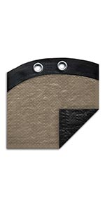 Robelle offers the most complete line of pool covers ever created. All Robelle winter pool covers are made with the strongest polyethylene material. Above ground pool covers include an all-weather cable and a heavy-duty winch, to be used with grommets placed every four feet on the cover. When included, the binding on above ground covers in 1.5”.