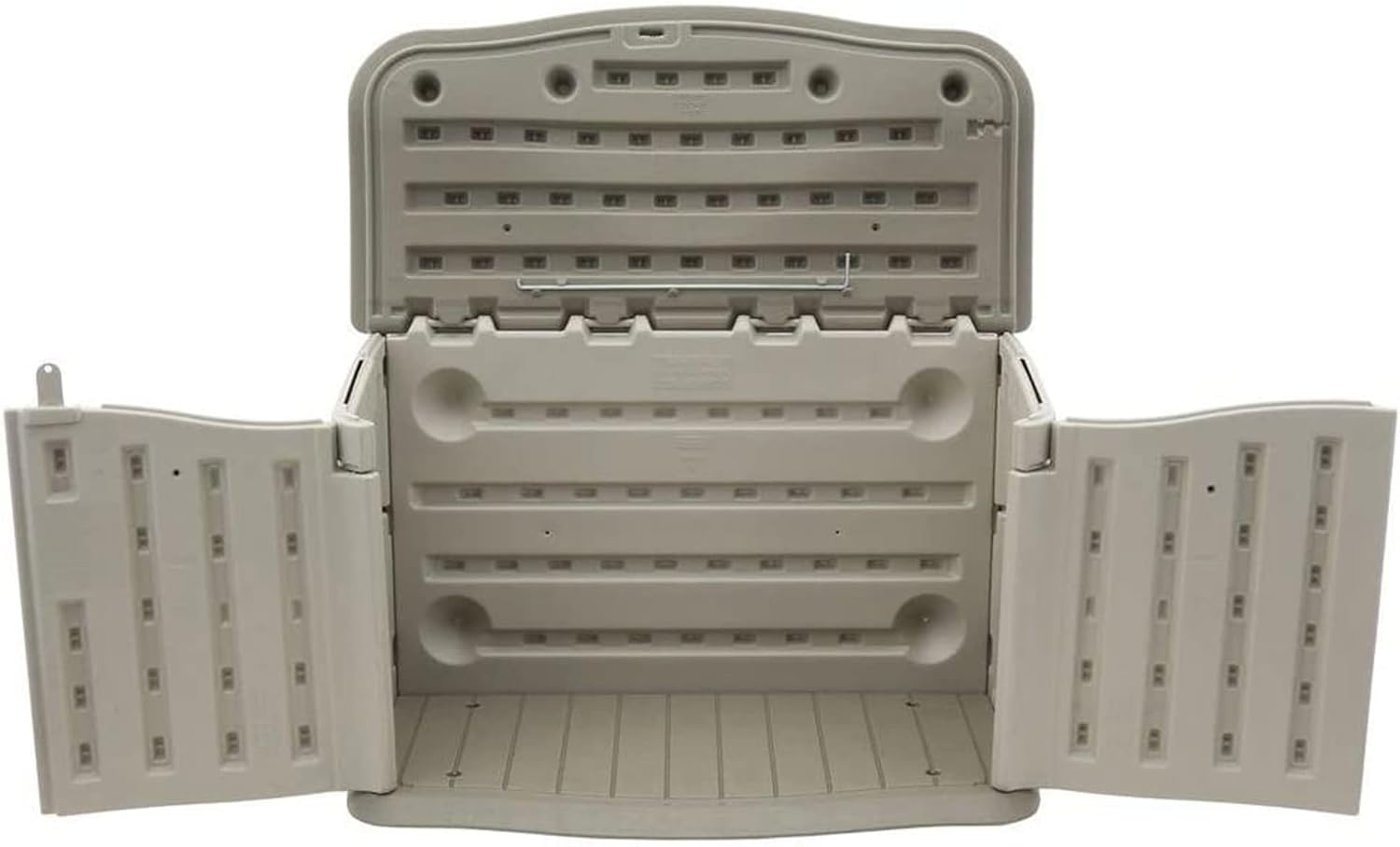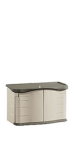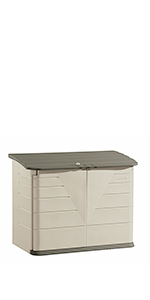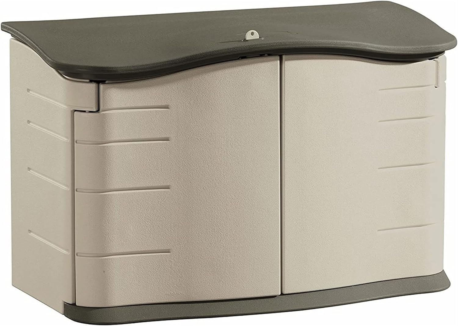 Rubbermaid Small Horizontal Resin Outdoor Storage Shed With Floor (4.5 x 3 Ft) Weather Resistant, Beige/Brown, Organization for Home/Backyard/Pool Chemicals/Toys/Garden Tools/Porch/Patio Cushions